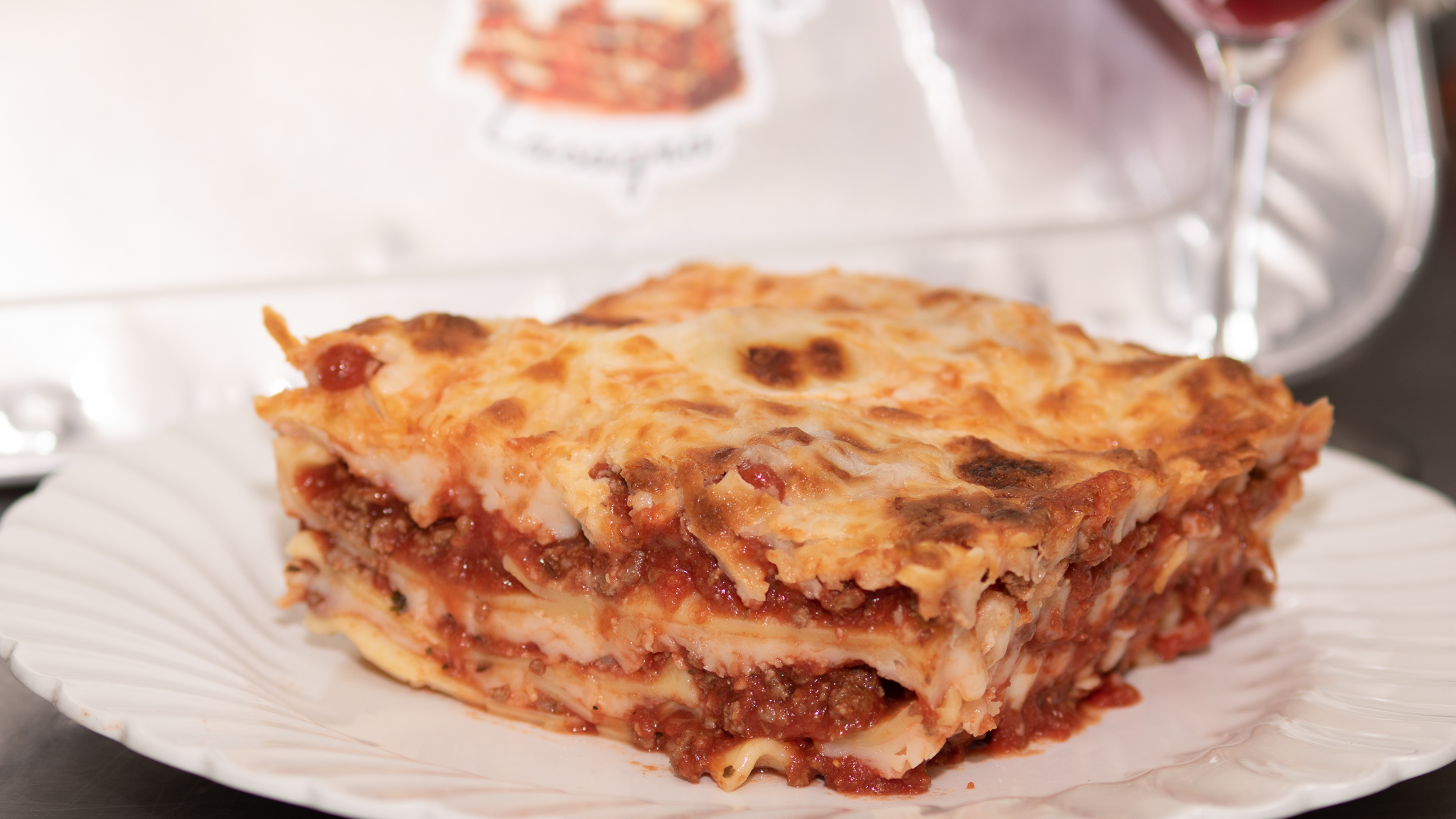 Meat Sauce and Cheese Lasagna like your mom used to make! Homemade tomato sauce with ground beef, Italian spices, red wine, fresh mozzarella, and grated Parmesan.